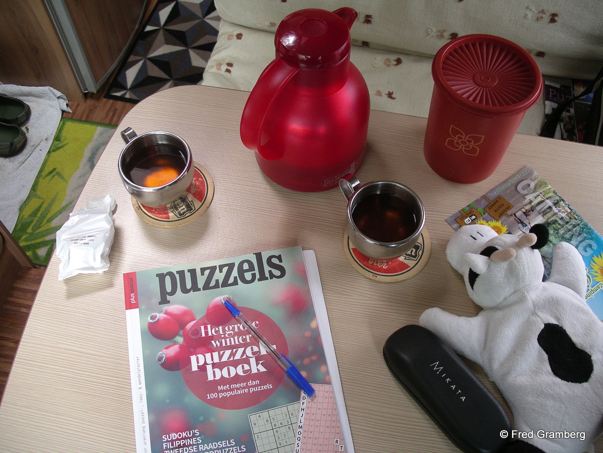 Onder de douche geweest en voor de rest zitten lezen en puzzelen. Voor morgen staat er weer een rit gepland naar La Turballe. De weersvoorspelling belooft een droge dag, maar eerst zien en dan geloven. Jullie begrijpen dat de geplande bbq van vandaag volledig in het water is gevallen.